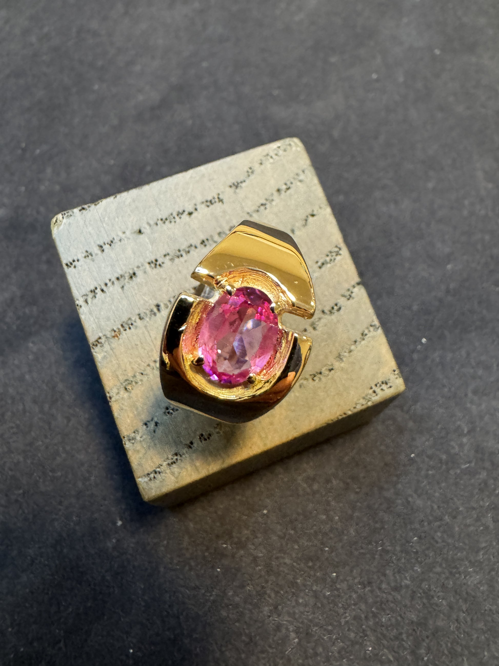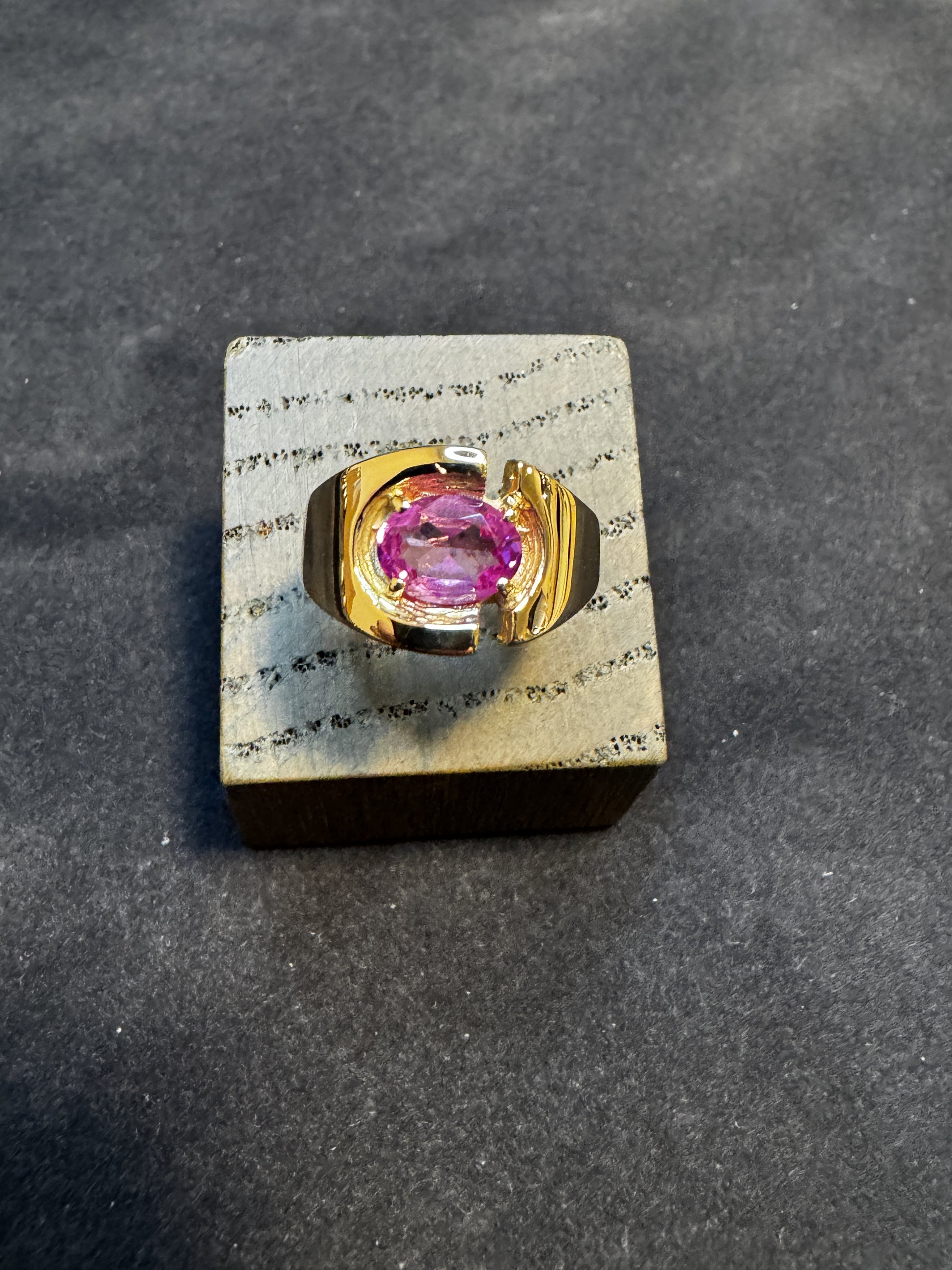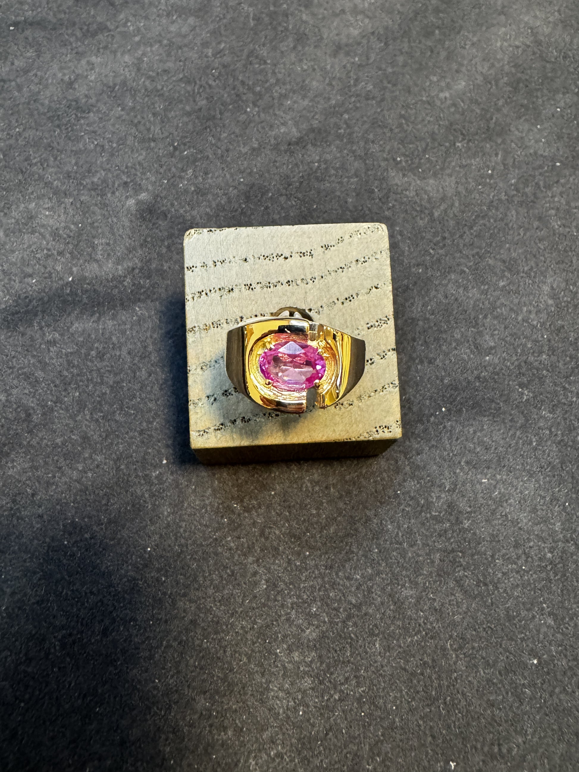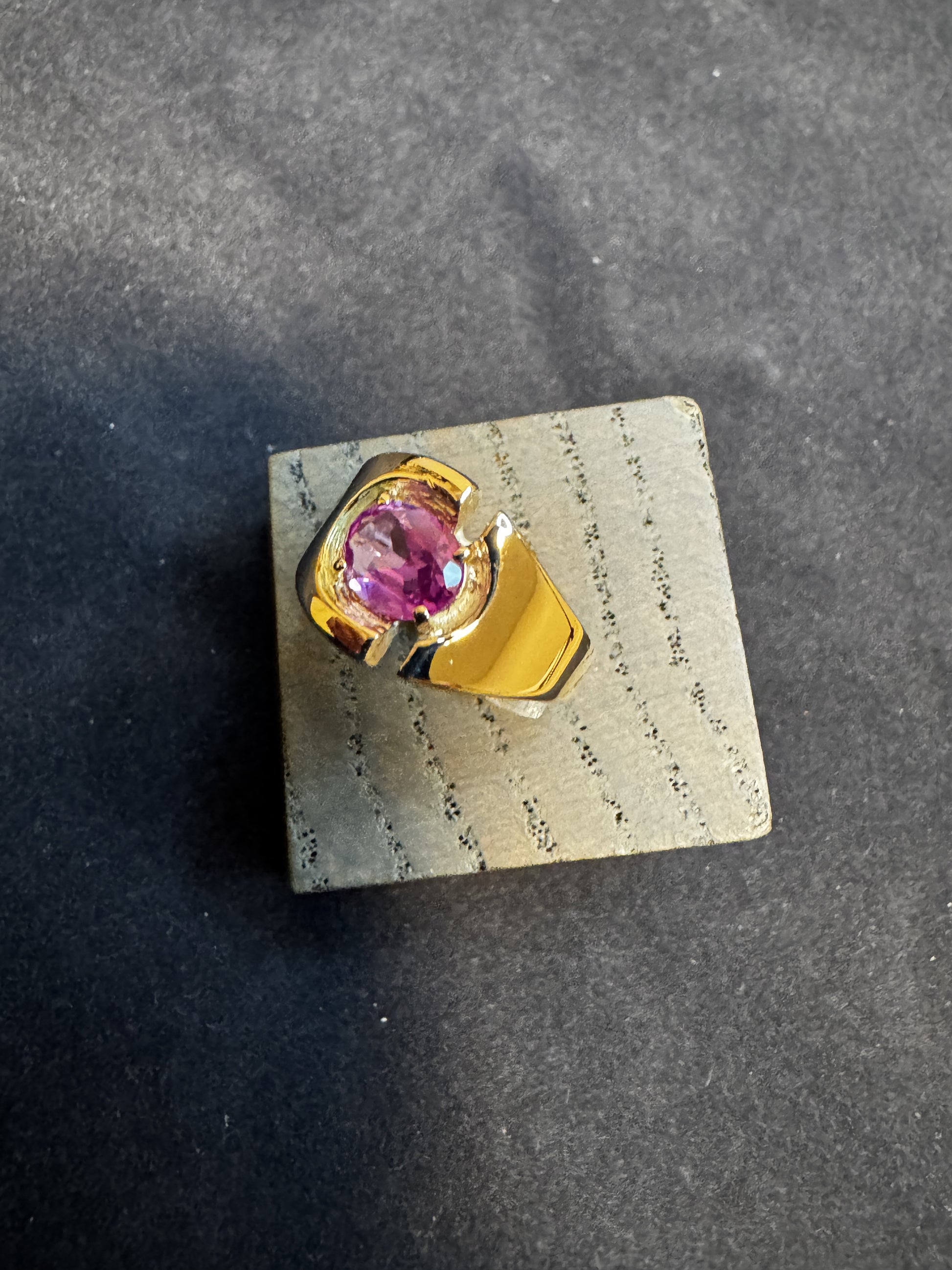 14 kt guldring med lyserød sten