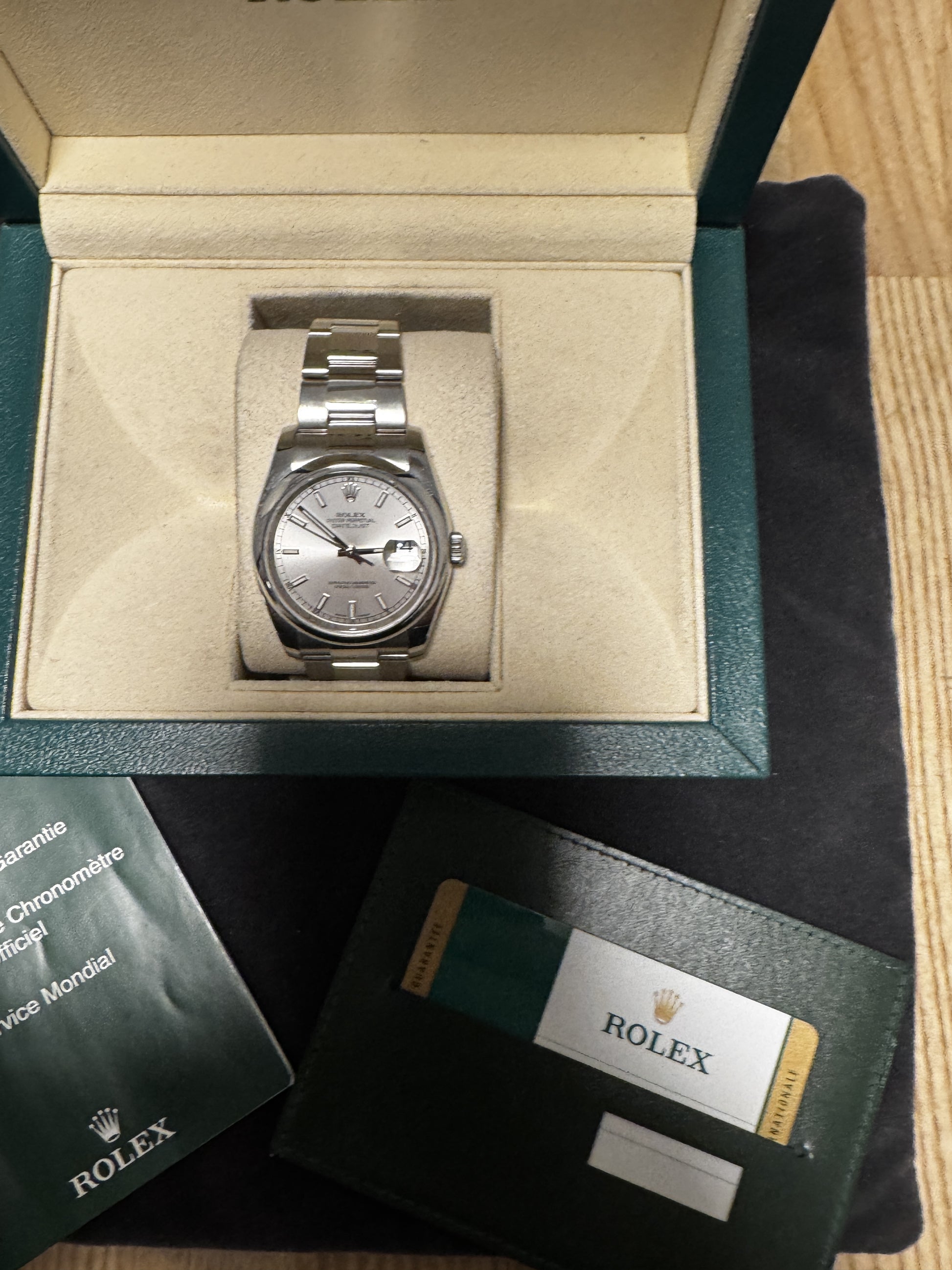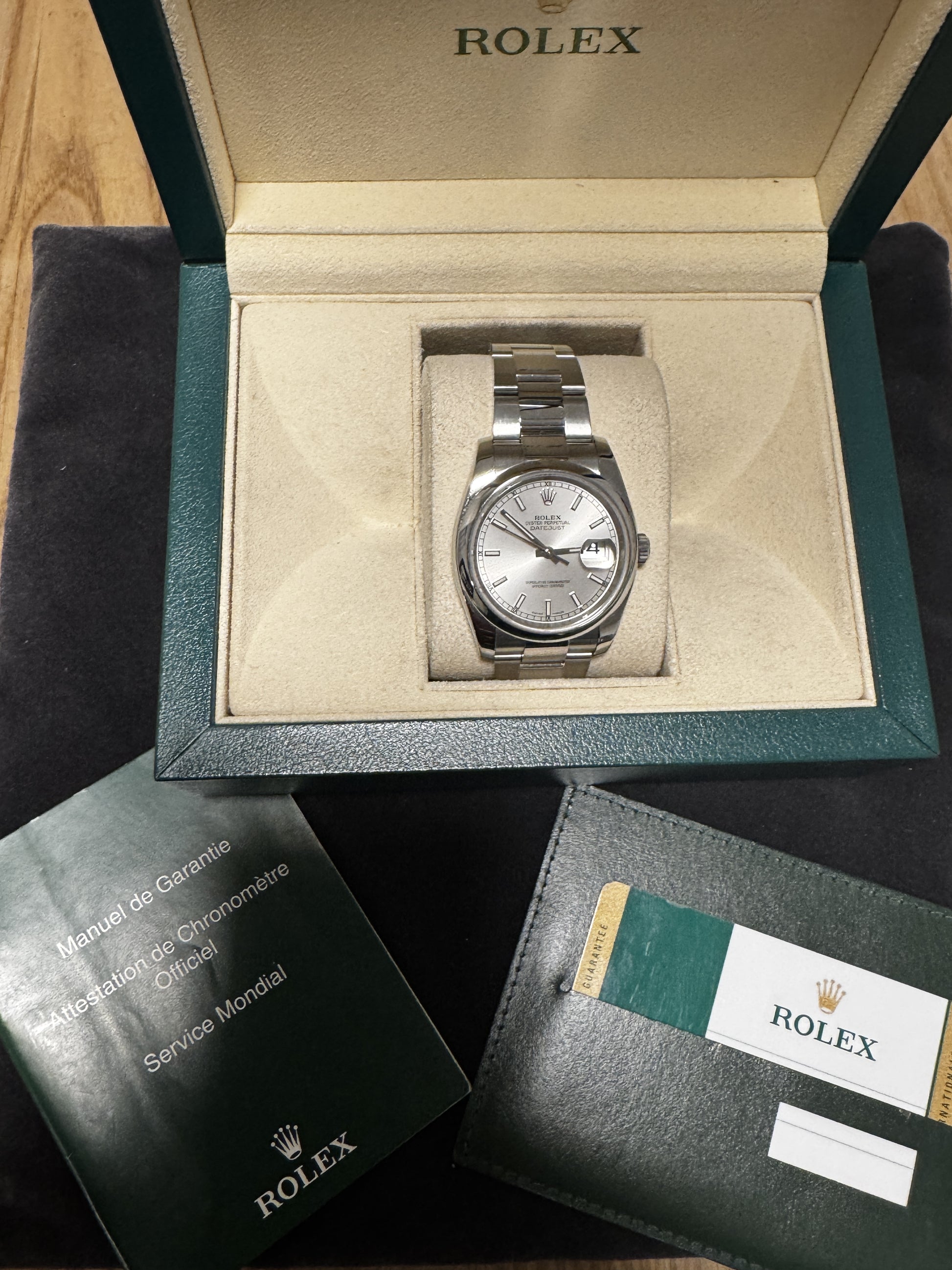 Rolex datejust fra 2016 36 mm komplet sæt med boks og papir